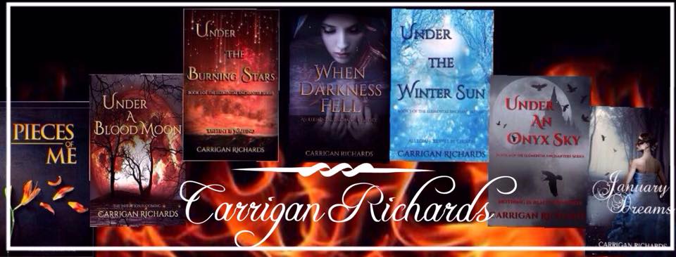 Books by Carrigan Richards:Elemental Enchanters Series: http://www.amazon.com/dp/B012XYQ08G Pieces of Me: https://www.amazon.com/dp/B00EDCELY2