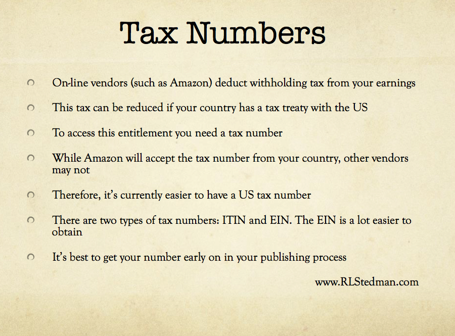 Therefore, if you want to sell on a number of platforms currently it's way simpler if you have a US tax number. Basically, there's two types of numbers - a number for an individual (ITIN) or a number for an entity (EIN). Writers are both: an entity (i.e. we write for generating profit so therefore we are a business) and an individual. Therefore, we have a choice of number types.
