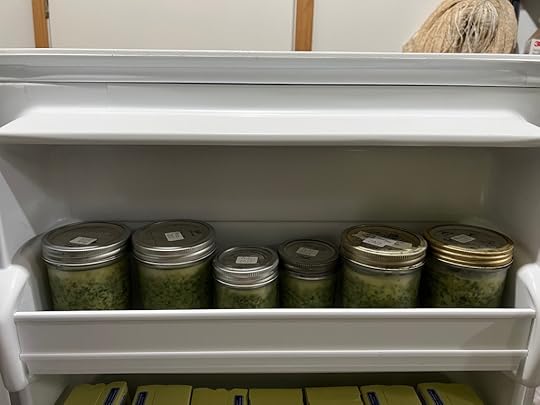 We put the pesto into freezer safe canning jars and store them in the freezer. We have yet to figure out how to can pesto.
