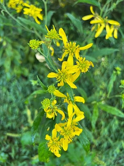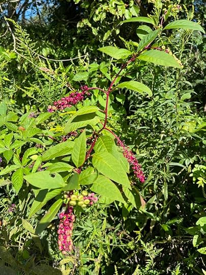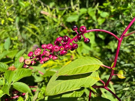 But DON’T. This (above and below) are poke berries and they can kill you. Birds, on the other hand, love them. I can’t wait for flock of Cedar Waxwings to come partake of the feast.