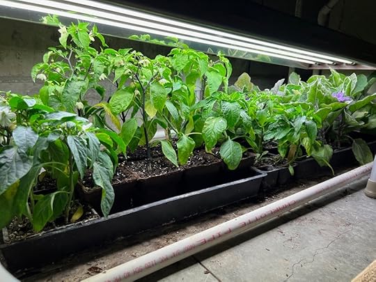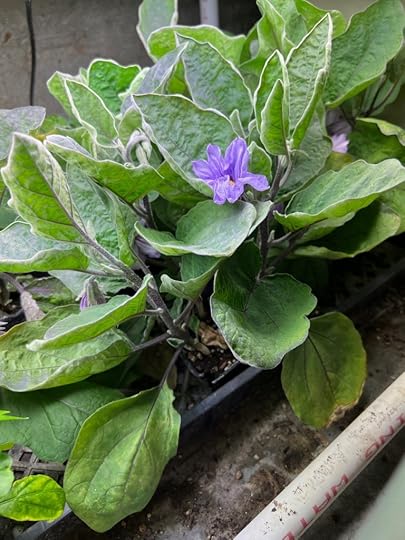 Look at how gorgeous the eggplant blossoms are! Why spend money on annual flowers that don’t feed you when eggplants provide food for both the eyes and stomach? Same with okra. They have flowers that are absolute show stoppers. It’s not like it’s super easy to grow eggplants; we have to wage a constant battle on flea beetles. But they are fairly easy to start and SO has discovered an excellent way to preserve them, so we’re still enjoying last year’s crop.