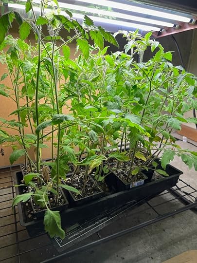 Ah, and the happiness-inducing green of the tomato seedling! I’m not looking forward to 200 hours of canning and dehydrating later in the summer but for now, I will admire their youthful loveliness.