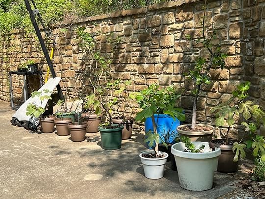 The Spousal Unit maintains a random assortment of potted plants on the driveway. Some are ones that’ve been indoors all winter and long for the wind to whistle through their branches. Others are figs that he keeps propagating because, holy moly, you cannot kill these crazy plants and they multiply like rabbits.