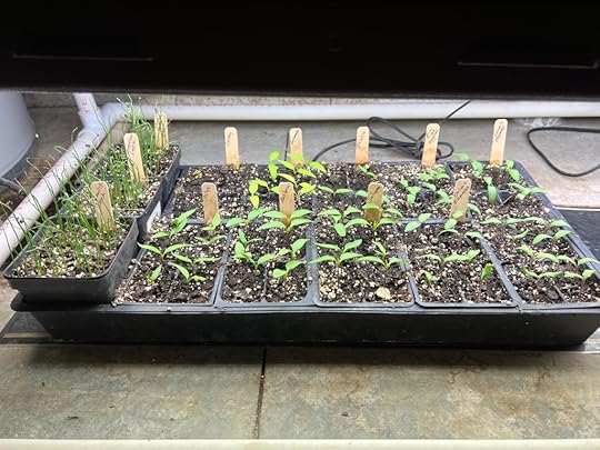 And it’s nearly March, so the Spousal Unit has started some of the summer crop’s seedlings! Such precious little things. Little do they know the big bad voles are out there waiting for them. Ack.