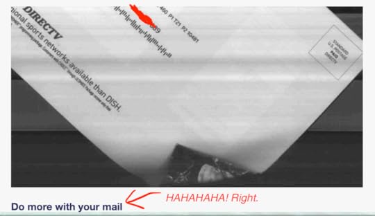 But you know what doesn’t go missing? Mangled pieces of junk mail. This image looks like the mail will be shredded or fall through the cracks, but it arrived just fine (I couldn’t resist a snarky comment at the bottom):
