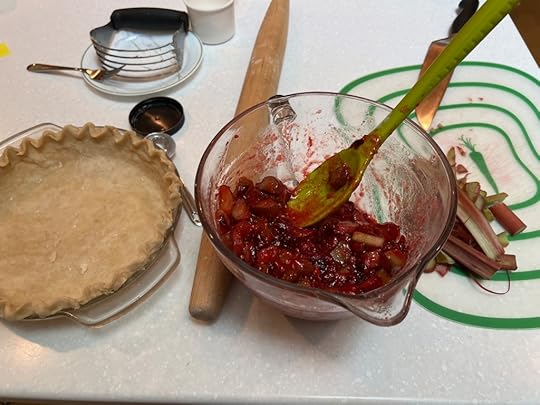 In case you’re wondering why Cornelian cherry-rhubarb, it’s because we didn’t get a big enough Cornelian cherry crop for me to do a whole pie with.