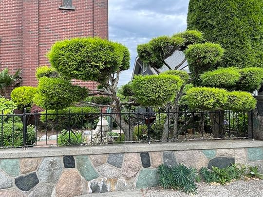 Lastly, I was was taken by this trimmed cedar (or juniper…can’t remember which) outside of a church which reminded me of the plants in Peter Brown’s book, The Curious Garden. Go look it up…you’ll see what I mean.
