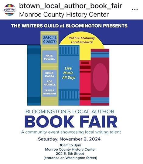 On the very slim chance that anyone reading this lives near Bloomington, Indiana, I want to invite you to a local authors fair tomorrow (Saturday, Nov. 2nd) that will be fun for all ages.