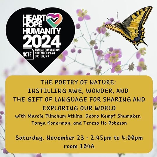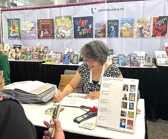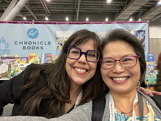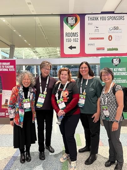 Last weekend was a whirlwind of activity at the National Council of Teachers of English conference. In addition to doing a book signing for Queen of Physics at the Union Square booth, I also presented at a panel on writing poetic nonfiction. For fun (as much fun as an introvert can have anyway), I attended a Candlewick Press author reception, met up with author/illustrator friends, online critique partners, and some editors, and ate some tasty seafood!