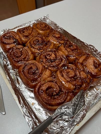 And because Kid1 was home for the holiday, I also made cinnamon buns (a very close facsimile of the famous University of British Columbia ones). Mmmm!