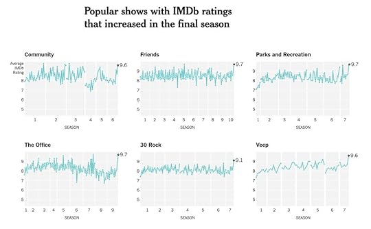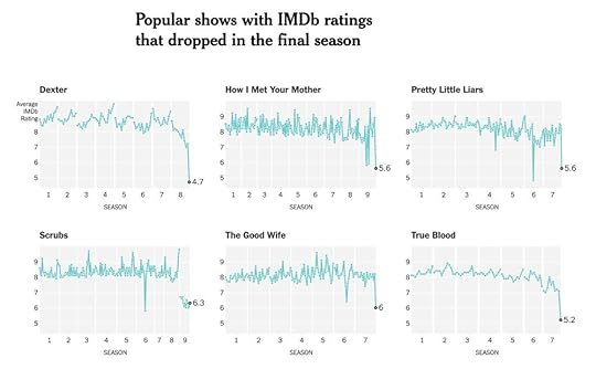 The data is questionable, since the ratings are mostly upset fans taking to IMDB to share their dislike. Fans never like to see their favorite shows come to an end, but the NY Times also reached into the data for other long running TV series to see how their final seasons fared.