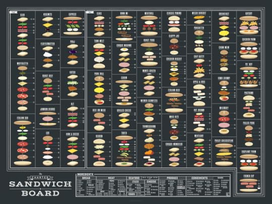 Now serving: A savory chart of sandwiches, featuring an internationally inspired menu of over 50 heroes, gyros, and more! From the basic BLT to the waistband-threatening food-pocalypse that is the Gatsby, this delectable, deconstructed diagram makes for delightful decor no matter how you slice it. Order up!