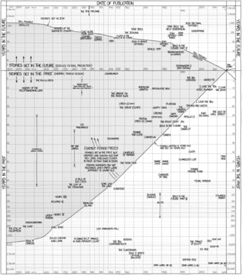 Stories of the Past and Future is an awesome timeline design from Randall Monroe at xkcd.com depicting the differences between when movies and TV shows were released, and the time periods they depicted. I printed off the large version and starting adding a few more on my own.