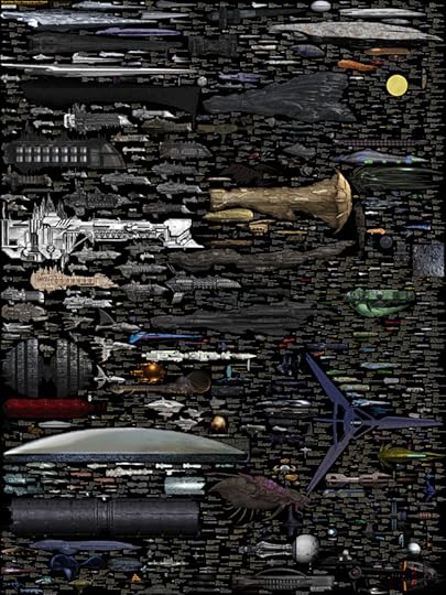 The images on DeviantArt are high enough in resolution, that you can download and print it out as a poster yourself to hang on your wall. The full-size poster resolution is 4,268 x 5,690 pixels. Most of the ships are clustered by franchise (Star Wars, Star Trek, Halo, Eve, Warhammer, etc.). As a reality check, the International Space Station (ISS) is included for reference.