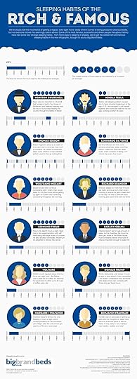 Even though we are all told that the recommended amount of sleep is 8 hours, everyone seems to function differently on the same amounts of sleep. The Sleeping Habits of the Rich & Famous infographic from Big Brand Beds introduces the sleep cycles of famous and successful people. I guess one sleep cycle doesn’t fit all!