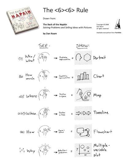 Here is an great example from Dan Roam, author of the book, The Back of the Napkin, Solving Problems and Selling Ideas With Pictures, of how using images and text can help a designer understand which type of visualization is appropriate to use when communicating different types of information. Easy to understand, easy to remember.