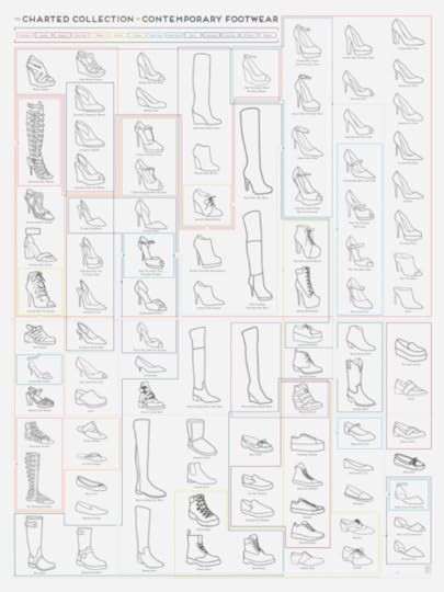 Can’t tell the difference between a slingback espadrille wedge and a peep-toe ankle strap platform wedge? The prolific infographic design studio Pop Chart Lab has you covered. The Charted Collection of Contemporary Footwear is a handy, color-coded cheat sheet of the many shoes the modern woman might go sauntering—or, in some cases, teetering—out of the house wearing.