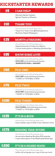 LeVar Burton has a fantastic Kickstarter project running to bring back Reading Rainbow to make it available on multiple internet connected platforms and free to classrooms in need. The team is using multiple infographics to help explain the project and the support the funding campaign goal of raising $5,000,000.