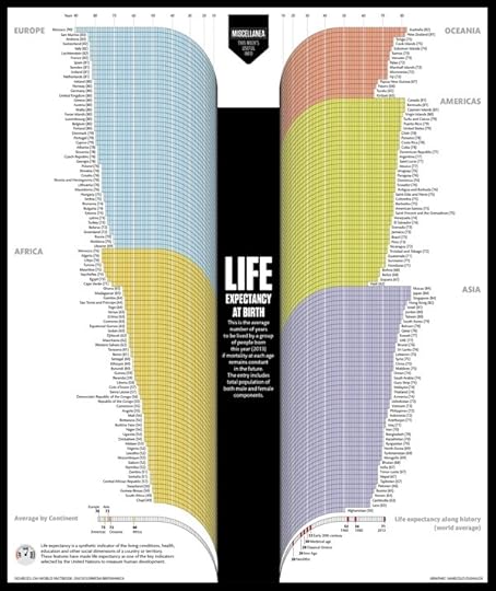 The Life Expectancy at Birth infographic by designer Marcelo Duhalde from Muscat, Oman is a fantastic data visualization of the current life expectancies by country if you were born 2013.