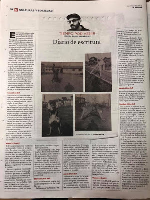 Tengo el blog abandonado. Una vez más. Lo intento con todas mis fuerzas. Pero parece que no hay manera. Sólo escribo todos los días si me obligo a hacerlo. Y tal vez por eso he decidido comenzar un nuevo diario de escritura. Esta vez, en el periódico La Verdad. Lo he titulado "Tiempo por venir". Como si la escritura fuera necesaria para convocar el tiempo. El porvenir. Y también la novela que quiero escribir y que aún no he podido comenzar con el tiempo necesario. De vez en cuando, iré dejando aquí los links al diario.
