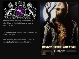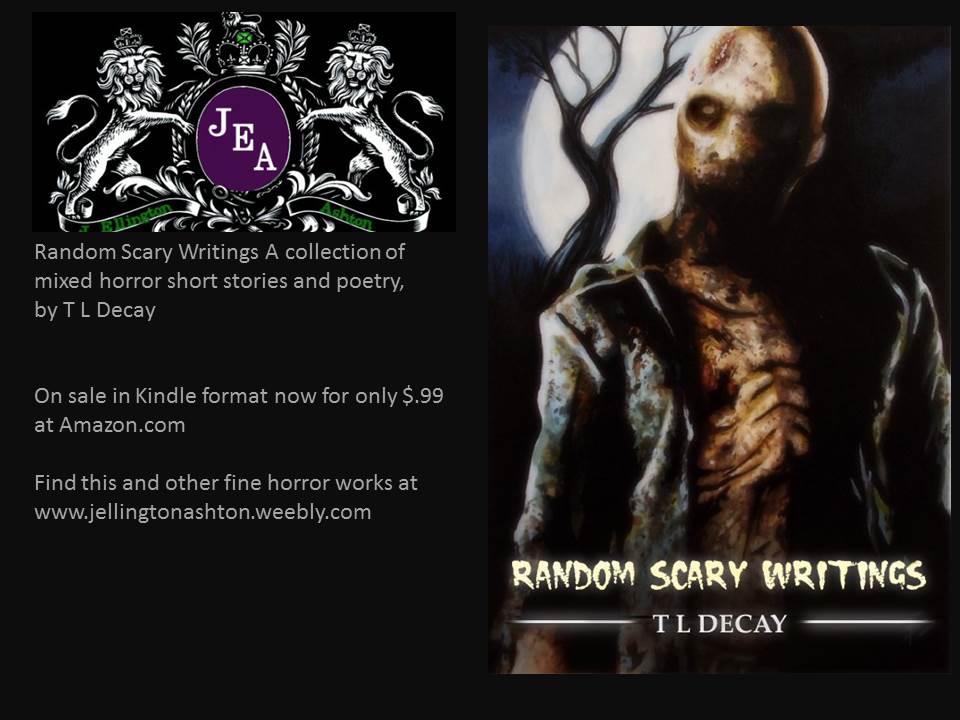Random Scary Writings A collection of mixed horror short stories and poetry,by T L DecayOn sale in Kindle format now for only $.99at Amazon.comFind this and other fine horror works at www.jellingtonashton.weebly.comRandom Scary Writings on Amazon