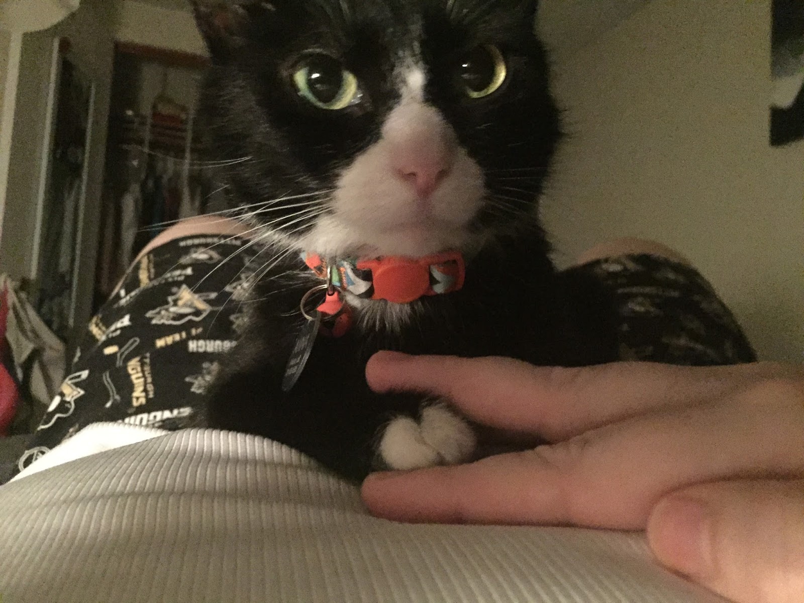 I scheduled her an emergency vet appointment that day, and the vet told me exactly what Google had: her retinas had mostly detached due to high blood pressure. She was still able to see some light, so she can still kind of navigate my apartment by sight, but the most we would be able to do is try to save her eyes from getting any worse. (If you noticed the weird eye reflection in the above picture, the detached retina is the explanation.)