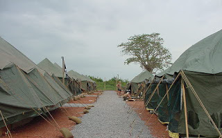An example of a standard Tent City. The image is in public domain and can be found hereOnce the logistics were taken care of, we were assigned tents, and off to bed we went to be at work by 0800 (I honestly don't remember being tired or pissed about not getting enough sleep. Maybe that was because I was 22, and at that age I could live off of Pepsi, candy bars, and 2 hours of sleep).