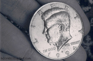 Meet JFK JR! Elly's lucky fifty-cent piece. Before the big incident of 2012, she carried it around in her wallet. It was one of those things she came across back in 2003, at the height of the Iraq War. Something felt weird and off when she stepped forward to board the bus that would ferry her to the airport.