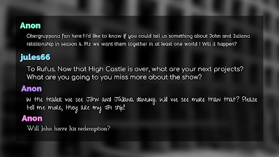 ....She is famous for her amazing gifs, and I've enjoyed seeing her posts throughout the years, so please give a warm welcome to the one and only ☆ Elise!I am right there with her on how this wonderful fandom has allowed her to blossom. Because of the friendliness of High Castle fans (and cast & crew!), I've been able to break out of my incredibly shy self. I will be forever grateful for that. ❤