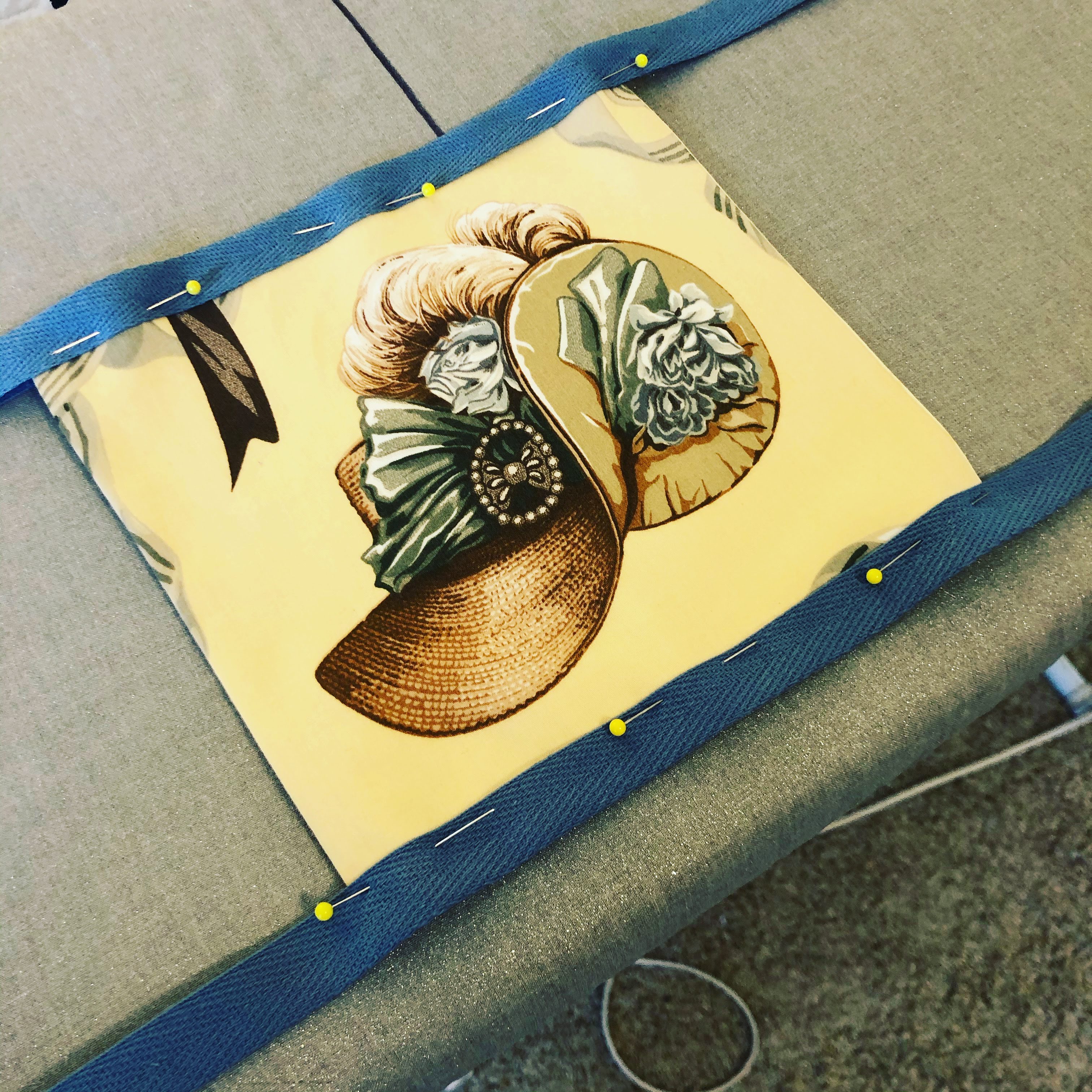 I found this fantastic polished cotton fabric printed with historical millinery designs and decided to use it in a promotional giveaway to celebrate my upcoming birthday.
