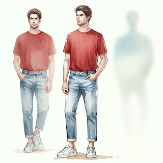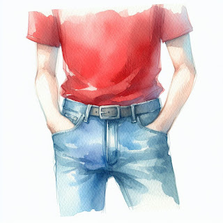 All that is a lot of nostalgic navel-gazing to preface why I decided to see how Copilot might generate watercolor sketches. For the exercise, I decided to go with something simple: a young Caucasian man in a red T-shirt and blue jeans. Here are the first couple of attempts: