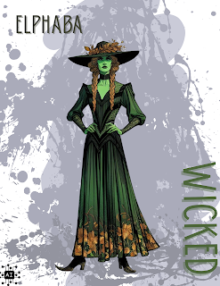 Anyhow, I’m revisiting Elphaba, recalling that one of my design professors criticized renderings with no background to situate the figure in space. Even a horizon line or a vague shadow was preferred.
