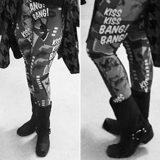 But on to fabric: I ordered two different designs, each in a different fabric: “Kiss Kiss Bang Bang” by Celia Forrester in sport lycra and Tree Lace - Emerald by peacocquettedesigns in cotton lycra jersey. When they arrived, the contrast between the natural fiber textile and the synthetic fiber textile was striking. I don’t want to make a value judgement—your preference will depend upon a number of factors (hand, color saturation of the print, shiny vs matte surface) but ultimately i’d suggest that you order test swatches in advance if you are uncertain which fabric to choose. I’m particular about leggings, and my preference depends upon whether i intend them for fashion purposes or athletic wear/underlayer warmth.