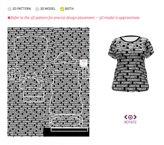 Screencap of the 2D/3D modeling on the Sprout site when you assemble a custom pattern/print.I guess i should note here that, should you just want the garment and you don’t want to sew it together, there’s an option to pay a “white glove fee” for Sprout employees to sew it together for you, but TBH if you don’t want to sew it together yourself, i’m not sure why you are reading this blog. Whatever though, not judging, eh?