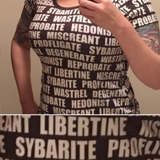 I decided to make a short-sleeved scoop-neck tee in one of the print designs from my Epithets collection, DEGENERATE synonyms. I loved how i could preview all of the options right there on the Sprout site, adding several prints, seeing how different style choices would change the layout on the fabric, and so forth. The 2D and 3D preview options are great for making it easy to visualize what you’re getting:
