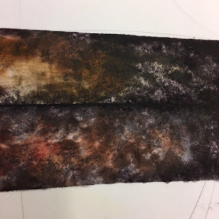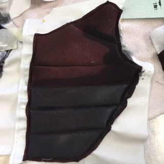 Here's a closeup of the level of depth and variegation in Margaret's sample. Of course, our suit was to be viewed by exhibit attendees standing in very close proximity to the display, whereas Margaret's costumes are often made to go onstage in a several-thousand-person-capacity theatre. This was a great teaching example for the students in terms of how a surface design needs to differ according to the distance of the gaze of the viewer; ultimately the surface we went with for the MoSF folks was not this complex in layering.