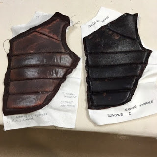 Devising the method of the surface treatment fell to me, and so i began a series of tests with the assistance of several of our graduate and undergraduate students at UNC-Chapel Hill. I knew that, unlike the original costumes, no actual person needed to, say, run across a desert wearing the costume we would make, so we weren't limited to surface treatments which would retain stretchiness.