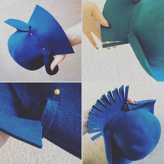 Top left: For mine, i started with a vintage fur felt capeline i had been saving for a project just like this one. You can do it with any felt cartwheel you like, though. A reader over on this blog's Facebook page made the excellent point that you could do this project with one of those floppy felt hats you see popping up these days at stores like Target for $10 or $15, which is a great suggestion for those without access to millinery suppliers, or time to mail-order them. Affordable, too, and it is frankly probably what the original artist did when making the one i've copied!
