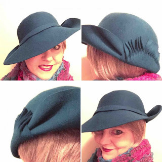 The original is made from a 100% wool hatbody, and was sewn entirely by hand. There is no maker's mark or label inside, and it appears to have been a DIY project, perhaps from a ladies' magazine tutorial in the first place.