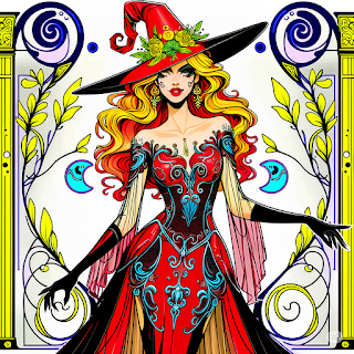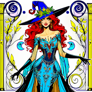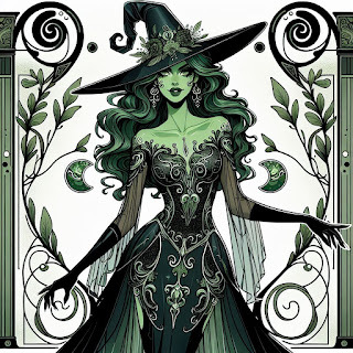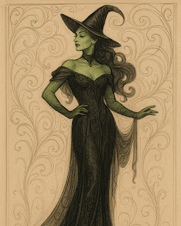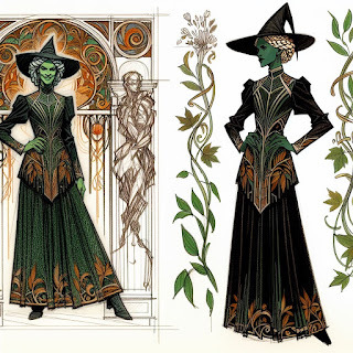Then I instructed Copilot to create an interpretation of the Elphaba witch design “in the same style” & what it created is not at all what I anticipated, and is not really influenced by the drawing style in my Shipwrecked renderings, and yet it’s absolutely fantastic.