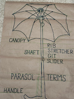 A poster I hand-drew illustrating parasol frame vocabulary termsThis weekend, I led a workshop on parasols at Cosplay America, a convention held annually in Cary, NC, for cosplay enthusiasts interested in constructing their own cosplays. Most of the people who attend bring a baseline knowledge of garment making and handcrafts, which makes it a great population for my UNC colleagues and I to share knowledge and cross-pollinate, if you will.