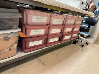The studio was initially re-organized during the Covid lockdown, as a way to keep people safely working, who were still on contract after the theater shut down. And I’m so grateful for that initial reorganization, completed by coworkers who did not work in my space on the regular.