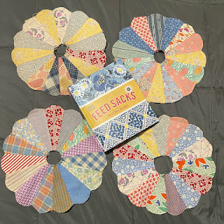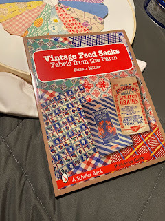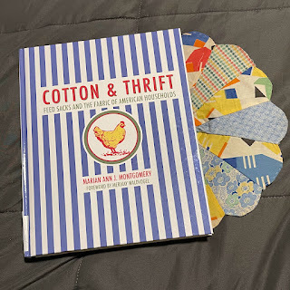 Another title on my deep-dive du jour, feed sack textiles: Cotton and Thrift: Feed Sacks and the Fabric of American Households, by Marian Ann J. Montgomery. This title accompanied and exhibit of the same name which ran at the Museum of Texas Tech University in 2019.