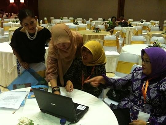Workshop ini seru banget, kebayang kan… ada ratusan ibu-ibu yang tidak familiar dengan laptop apalagi bikin sesuatu dengan itu