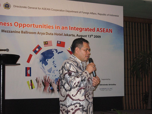 Saya menghadiri makan malam bertajuk 'Business Opportunities in an Integrated ASEAN' atas undangan Pak Direktur Jendral Kerjasama Asean, Pak Djauhari Oratmangun. Basically ada 10 meja yang diisi oleh wakil dari negara-negara ASEAN. Kebetulan saya dibawa ke meja depan, meja dari perwakilan Thailand, Ms. Yupawan. Tujuan dari makan malam ini adalah memberikan kesempatan untuk pengusaha-pengusaha Indonesia untuk menjalin networking dan looking for any business opportunities di negara-negara ASEAN.