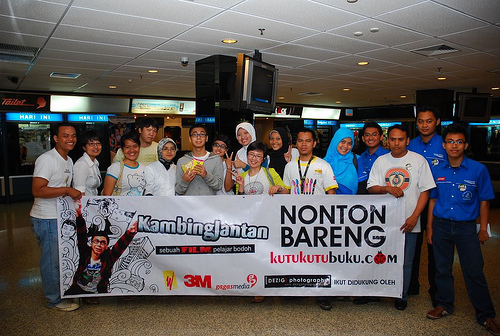 Hore! Hari minggu tgl 8 Maret 2009 kemarin, bertempat di Planet Hollywood 21, Kutukutubuku.com ngadain nonton film Kambing Jantan yang dihadiri oleh pemeran utamanya, Raditya Dika dan didukung oleh 3M, Majalah Kawanku, Pocari Sweat, Dezig Photography dan Gagas Media.