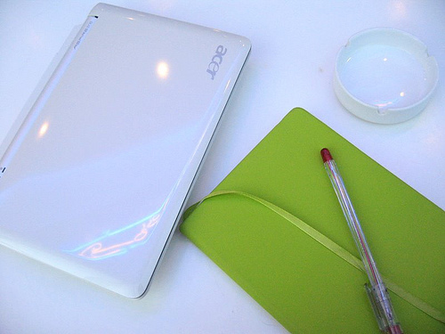 Gue sangat excited dengan pertumbuhan laptop kecil mungil yang bisa dijinjing kemana-mana buat internetan. Gue masih inget waktu gue dan anak-anak satu divisi di kantor dulu, ngerubung ngeliatin website sebuah laptop yang nampilin gambar cewek lagi tiduran di pantai sambil internetan dengan laptop kecilnya yang ditaruh di atas handuk. Tempting banget!