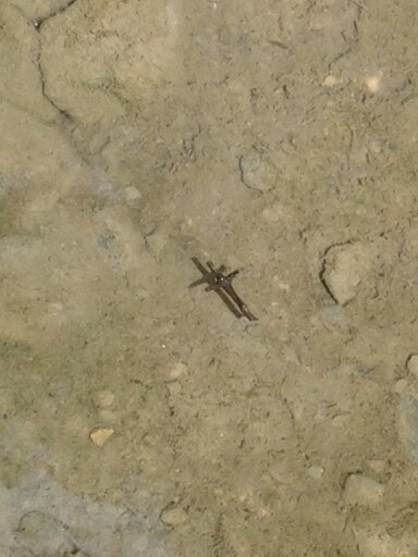 I stopped the children and showed them the cross. Tiny batches of tiny minnows darted underneath the precious, much needed symbol. Sharky wanted to pick it up to "show Grandmama." We felt so privileged to see something so special.