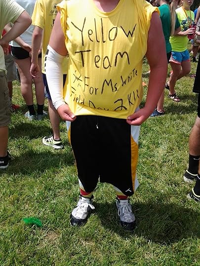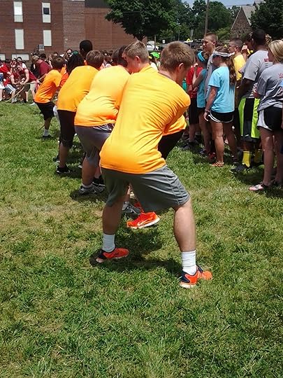 Now, my school does field day RIGHT! Of course, our football team has won the national championship so we know what's important. No joke. Academically, we are also one of the top schools in the state. Tennessee, but still. That dog'll hunt, ya'll! This week, 9thgraders had a blast in the hot May sunshine. They sprinted, tossed, bear-crawled, jumped, and tugged with sweat-soaked delight. We even had a gross eating contest and they cheered each other on, praying someone puked. It was awesome!