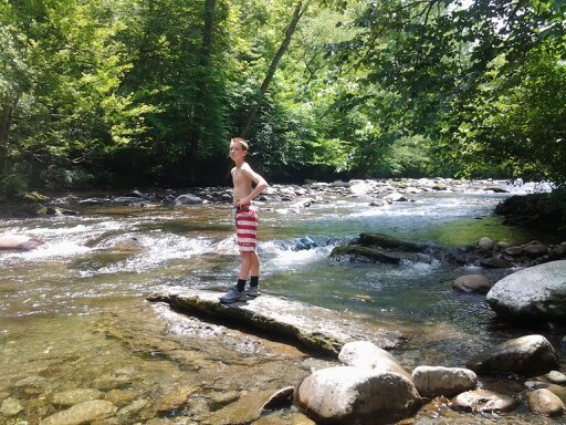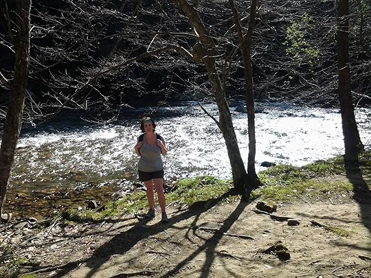 Sharky surveys the Little River in Metcalf Bottoms, GSM